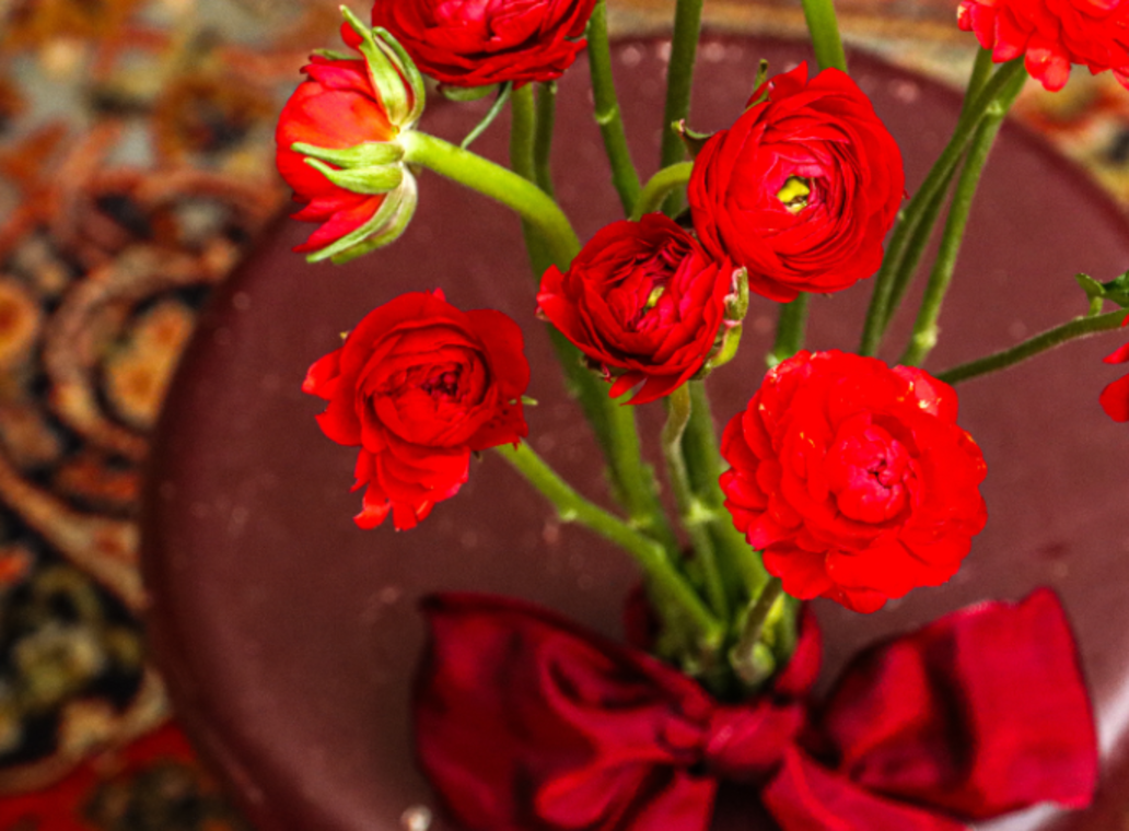 Schleifen haben in dieser Saison einen starken Einfluss auf das Floristikdesign. Ranunkeln passen dank ihrer weichen Formen und ihres eleganten Charakters perfekt dazu. Viele Designer kombinieren die Blume mit Satin- oder Samtbändern, um einen üppigen, festlichen Look zu erzielen. Diese Kombination eignet sich hervorragend für Wintersträuße, Veranstaltungen und Fotoshootings.