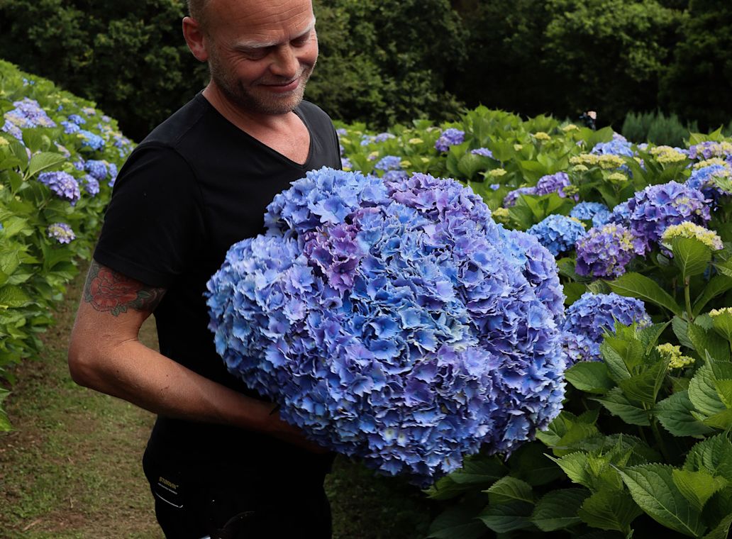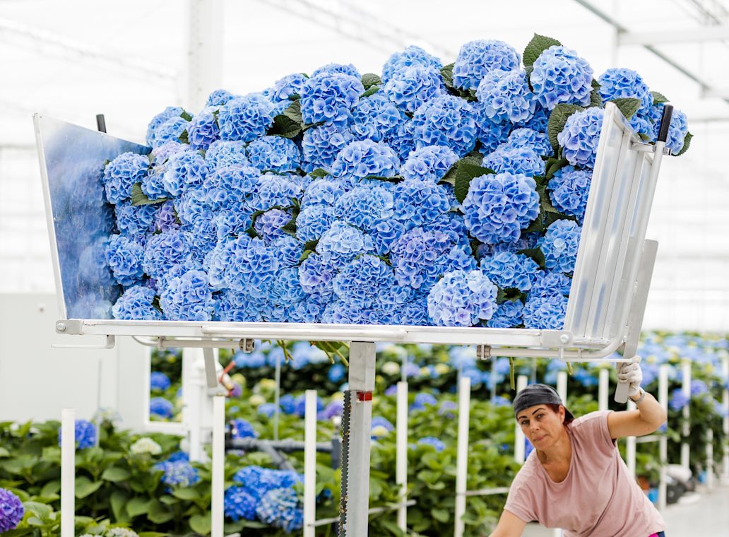 Jede Hortensie wird Stück für Stück von Hand geerntet. Nach der Ernte kommen die Schnittblumen in große Schubkarren und werden dann in der Halle nochmals kontrolliert und ausgewählt. Auf diese Weise liefern wir das Beste vom Besten! Mit viel Liebe zum Detail wird jede Blume auf die richtige Stiellänge geschnitten, in Wasser gestellt und so schnell wie möglich in die Niederlande gebracht. Als Blumengroßhändler bringen wir die schönen Hortensien direkt aus Frankreich zu unseren Kunden, damit sie sich an diesen Blumen in Spitzenqualität erfreuen können.