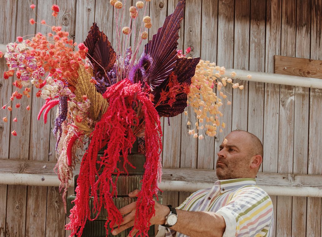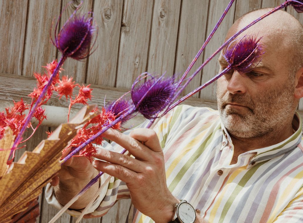 Every flower in our ART Collection undergoes a careful process. First, we dye each flower in a deep, uniform colour as a base. Then we add contrasting shades, creating special patterns and textures. This process highlights the natural beauty of dried flowers and offers dynamic bouquets that inspire any business flower buying.Â
