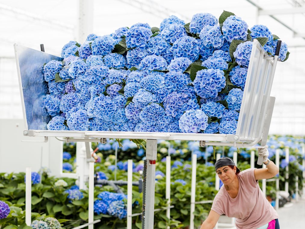 Each hydrangea is harvested piece by piece by hand. After harvesting, the cut flowers go into large wheelbarrows and are then checked and selected again in the shed. This is how we deliver the best of the best! With attention to detail, each flower is cut to the right stem length, put in water and brought to the Netherlands as quickly as possible. As a flower wholesaler, we bring the beautiful hydrangeas directly from France to our customers so that they can enjoy these top-quality flowers.