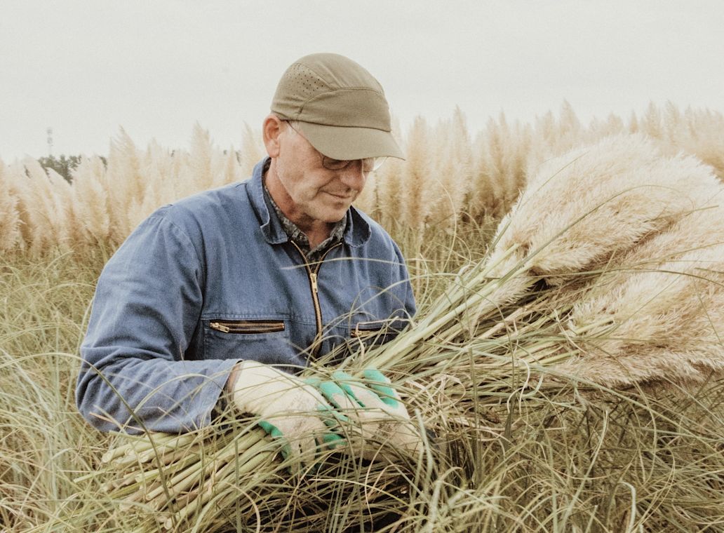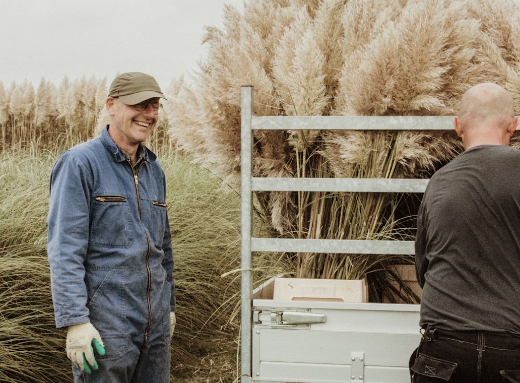 Ton's agricultural background began with his father, who was a dairy farmer. Pampas cultivation started about 30 years ago, by chance, when a plant grew on a manure pile. Since then, Ton has developed a passion for growing and perfecting pampas grass. Today, he sells both fresh and dried cortaderia, either natural or dyed. After years of research, he found an environmentally friendly dye to color the pampas in the most beautiful trend colors.