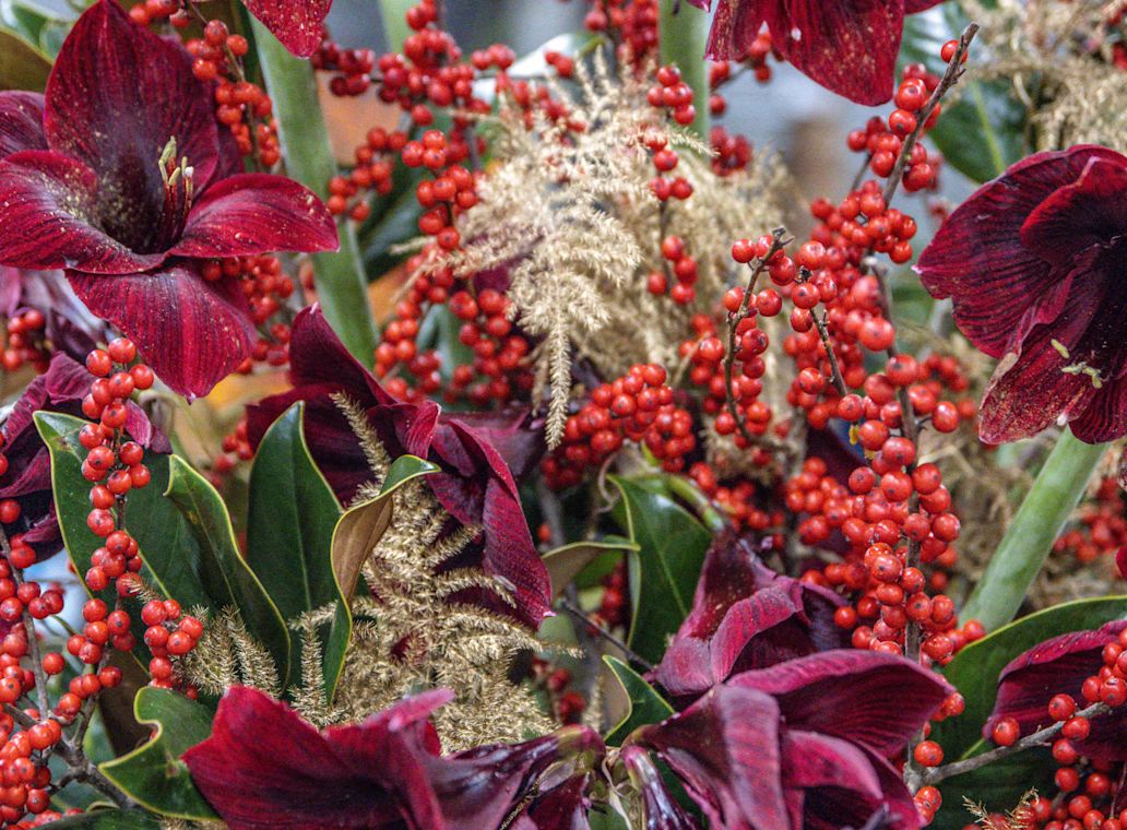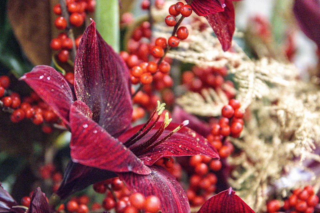 Amaryllis are the stars of winter: powerful and elegant. Thanks to their sturdy stems and long vase life, they are perfect for professional arrangements. A single stem makes an impact, and when combined with Christmas greenery or ilex, they create an instant wow factor.