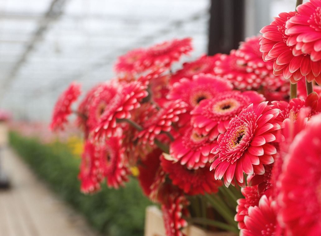 Wist je dat Kwekerij Van der Wilt maar liefst 185.000 gerberaplanten heeft? Een gerberaplant gaat ongeveer 3 jaar mee en produceert gemiddeld 16 tot 22 bloemen per vierkante meter per week. Dit betekent dat er dagelijks zo’n 115.000 stelen worden geplukt, elk met een lengte van 50 cm. Al dit moois groeit onder de gloed van 2000 lampen, die zorgen voor de perfecte omstandigheden.